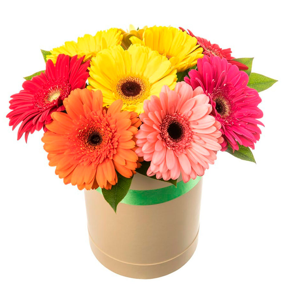 Цветы в коробке «Микс гербер» с доставкой по г Озерск (Калининградская обл): вы можете заказать букет в онлайн-магазине «Флормания» по цене от 2890 руб.