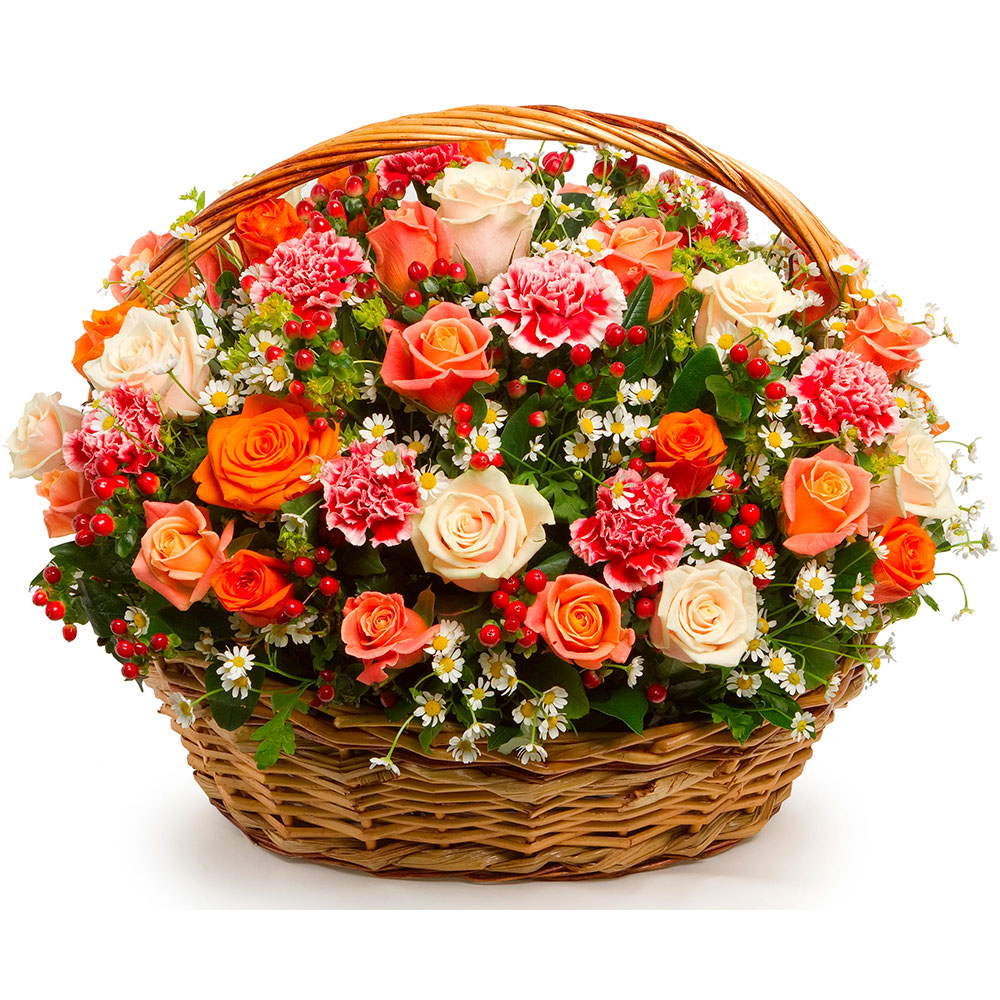 Цветы в корзинке «Гранатовый браслет» с доставкой по г Озерск (Калининградская обл): вы можете купить букет в цветочном интернет-магазине «Флормания» по цене от 3190 руб.
