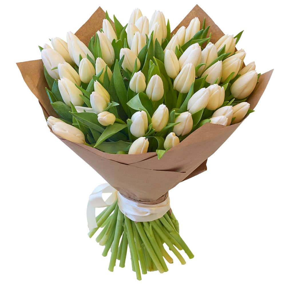 Тюльпаны белые с доставкой по г Озерск (Калининградская обл): вы можете купить букет в гипермаркете цветов «Флормания» по цене за 150 руб.