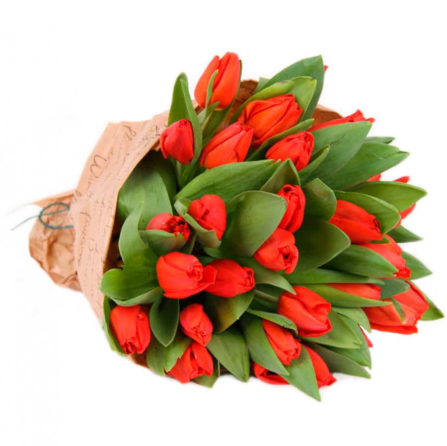 Тюльпаны красные с доставкой по г Озерск (Калининградская обл): вы можете заказать букет в цветочном гипермаркете «Флормания» по цене за 150 руб.